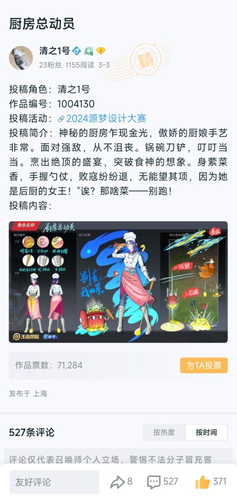 其次,厨娘的创意并不新颖(程咬金就有厨师皮肤)。我的精力都放在了如何画好厨娘,而忽略了厨娘这个创意本身就无亮点可陈!所以,相比于前排作品的天马行空,我的想象力……仅比没有稍微强点吧。我现在才觉悟,这个比赛比得不是把一个角色塑造地多少完美,而是如何把绝佳创意和能否落地做完美地融合!